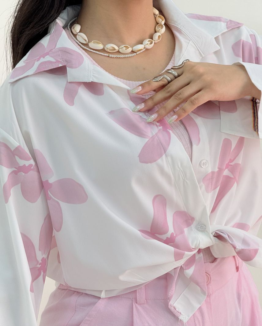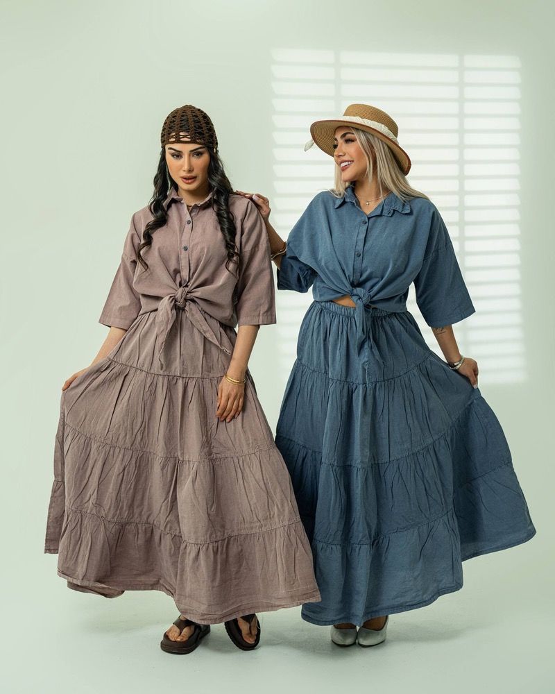 ست لنین شومیز گره ای و دامن دریا فری سایز