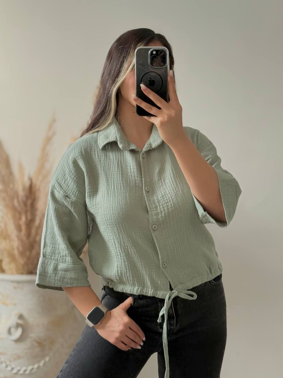شومیز کراپ زنانه پایین لیفه دار فری سایز