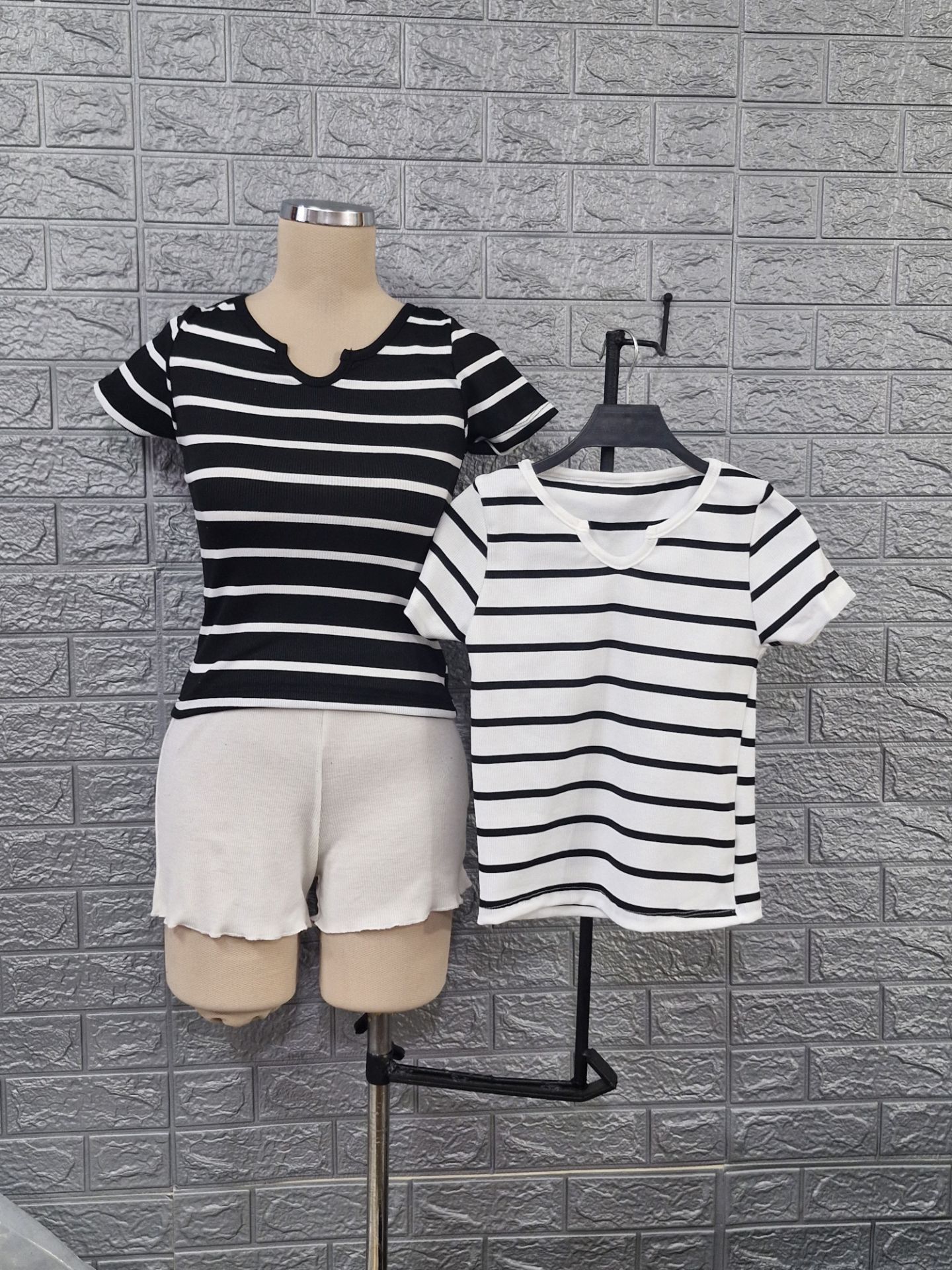 تی شرت راه راه یقه دلبری ( فری سایز)