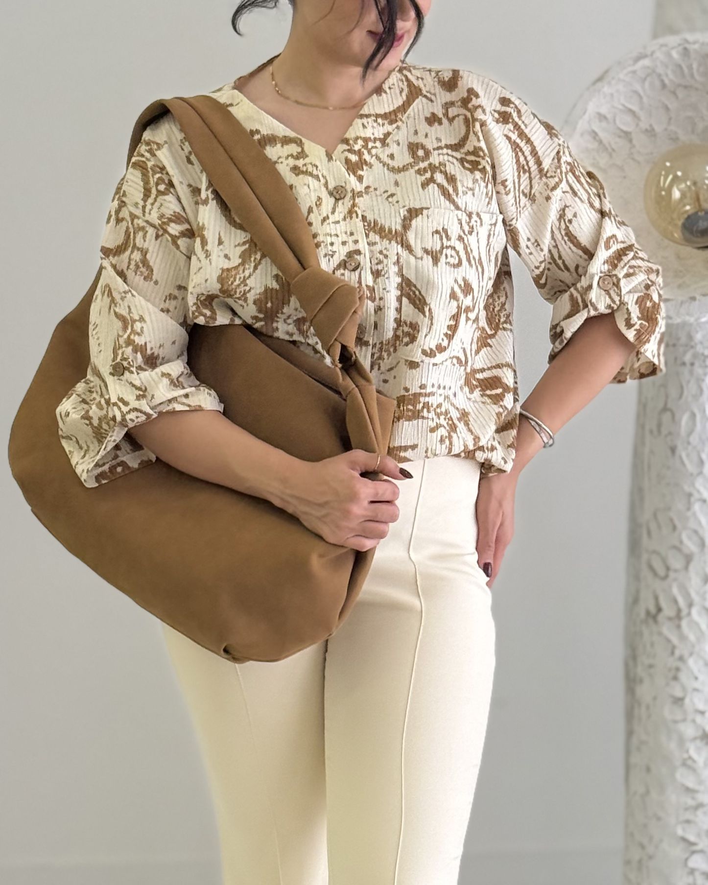 ناموجودشومیز زنانه آستین دوبل فری سایز